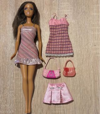 Muñeca Barbie Teresa set Barbie Teresa doll and pink fashion Las fotos forman parte de la descripción, tal cual las fotos. (Tiene el pelo enredado hay que peinarla bien y asearla) Son juguetes con los que los niños han jugado así que pueden tener defectos si tienen dudas pregúntenme o pídanme mas fotos.