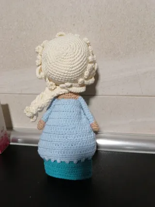 Adorable muñeca Elsa de Frozen hecha a mano con la técnica amigurumi. - Tejida a crochet. - Diseño de personaje. - Color azul y rubio.