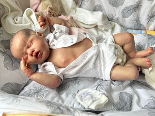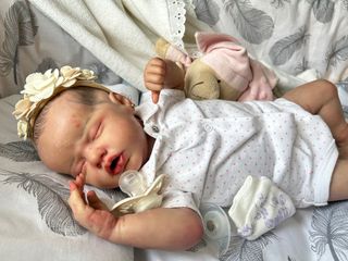 Muñeca Reborn realista Kit Indie Reborn artesanal vinilo completo sexado en niña 👧🏻 Detalles como venas , arañazos , marcas . Mide 49cm Peso aproximado 2,300 Irá vestida a mi elección con algún complemento.
