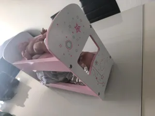 Cuna de madera para muñecas, ideal para juegos de imitación. Su diseño combina colores pastel y gris. Está bastante bien, se enviaría desarmada - Estructura de madera. - Barreras de seguridad. - Base de madera.