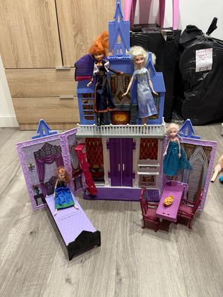 Set de castillo de Frozen con cuatro muñecas. - Incluye castillo. - Cuatro muñecas