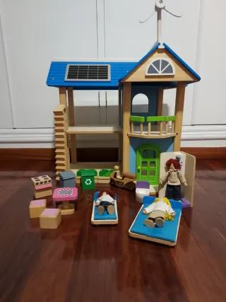 Casa de muñecas de Playmobil con un diseño colorido y atractivo. - Tejado rojo con detalles. - Fachada con ventanas y puerta. - Asa para transportar fácilmente. - Incluye accesorios.