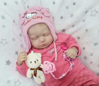 Muñeca Reborn con detalles muy realistas, como si fuera un bebé de verdad. Viene vestida con un conjunto de punto gris y un gorrito a juego. Un 🎁 con la compra - Conjunto de dos piezas: jersey con gorro y pantalón. - Detalle de pompón en el gorro. - Tejido de punto suave.
