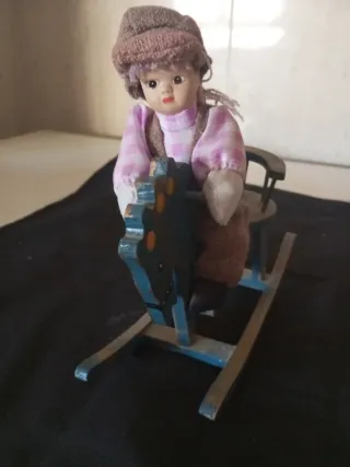 Muñeco antigua mecedora infantil