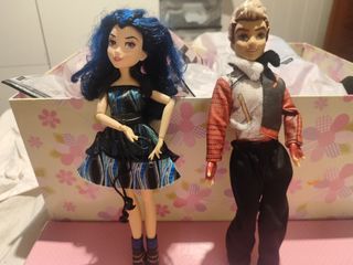 Preciosas muñecas de Mal y Jay de Disney. Ideales para coleccionistas o para jugar. - Dos muñecas en total. - Muñeca Mal con vestido azul y negro. - Muñeco Jay con chaqueta roja y negra.