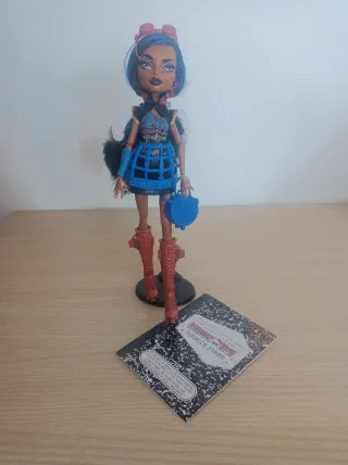 Muñeca de la colección Monster High, personaje Robecca Steam. - Incluye su bolso azul. - Botas de color naranja. - Vestido azul con detalles. - Soporte para la muñeca.