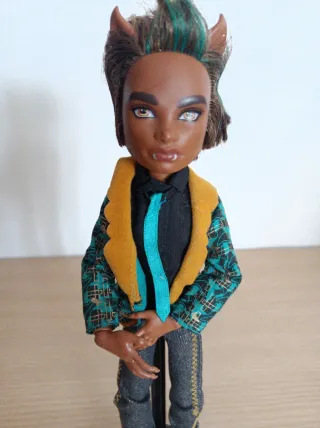 Muñeco de Clawd Wolf de Monster High, listo para unirse a tu colección. - Incluye soporte para exhibición. - Viste un atuendo a la moda con chaqueta, camisa y corbata. - Detalles característicos del personaje.