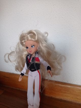 Muñeca vistiendo de moda con pantalones campana y pendientes grandes. Supermelena rubia. Perfecta para jugar o coleccionar.
