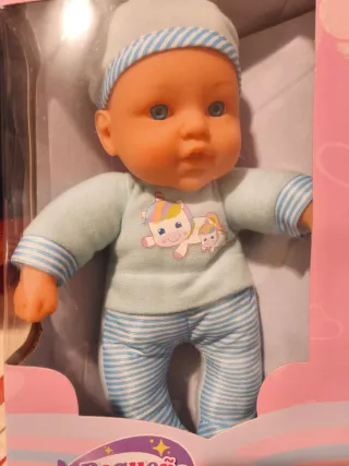 Muñeco bebé de la marca Famosa, con un tamaño de 31 cm. - Incluye pijama azul con estampado de unicornio. - Viene con gorrito a juego. - Edad recomendada: 24 meses en adelante.
