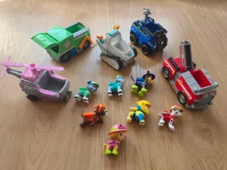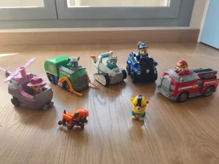Conjunto de vehículos y figuras de la Patrulla Canina. - Incluye varios vehículos de diferentes personajes. - Figuras de los cachorros. - Diseños coloridos y divertidos. Se vende en lote o individualmente, cada muñeco por 4€ y el coche con muñeco por 8€