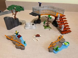 Set de Playmobil Refugio de Leones. - Incluye puente con barandillas y escaleras. - Árboles y rocas. Esta incluido la roca del set d suricatos y el árbol de los tucanes. - Accesorios como huesos y comida. - No incluye los muñecos. Se vende por falta de espacio. Como nuevo; mi hijo casi no ha jugado con él. Recogida en Bormujos o Dos Hermanas o envio por wallapop