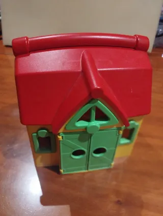 Maletín de granja de Playmobil, fácil de transportar y guardar. - Diseño de granja con techo rojo. - Puertas verdes abatibles. - Ventanas laterales. - Muñecos, animales y utensilios.