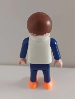 Figura de Playmobil de un niño con ropa deportiva. Marcado en el pie del muñeco año 1992. - Chaqueta naranja con detalles negros y número 7. - Pantalón beige. - Botas naranjas. Estamos vendiendo nuestra colección porque necesitamos el dinero.