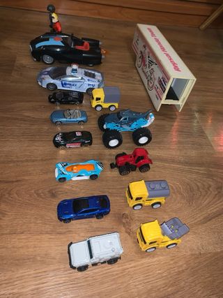 Lote 13 coches + camion, 2 Playmobil, y un muñeco