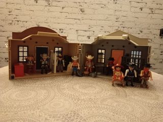 Se venden figuras y caballos Playmobil del Oeste. Son cinco figuras, incluyendo indios y vaqueros, y dos caballos. Están en buen estado. Tal y como se ve en las fotos.