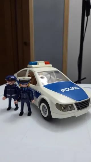 Coche de policía de Playmobil, incluyendo 2 muñecos policías playmobil (pedir foto) En muy buen estado. - Diseño clásico de coche patrulla. - Detalles como sirena y distintivos. - Asientos interiores visibles. Tengo helicóptero de policia de policía en otros anuncios pero puedo hacer uno único con descuento, ambos por 25 euros. Si estás en Madrid, puedo entregar en mano si nos viene bien, sino por la app con mensajeria.