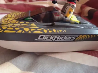 Lancha de Playmobil con diseño llamativo y figura. - Diseño con estampado de escamas. - Incluye figura de piloto. - Ventanilla tintada. -flota No tengo caja