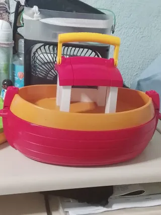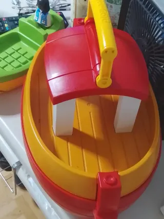 Set de dos barcos de Playmobil. También pequeño remolque y muñeco artículado. Barco grande 30 cm y pequeño 20 - Barco rojo y amarillo con asa. - Barco con detalles en blanco. Descuento del 10% en dos o más artículos de mis anuncios y 25% a partir de 5