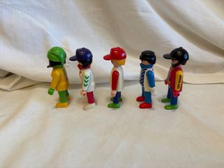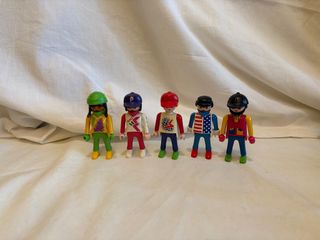 Conjunto de cinco figuras de Playmobil. - Incluye figuras de diferentes edades y vestimentas. - Ideal para coleccionistas o para jugar.
