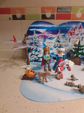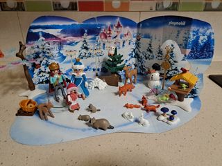 Conjunto de figuras y accesorios de Playmobil 123 con temática navideña. - Incluye un reno, un árbol de Navidad, un muñeco de nieve, varios animales, una figura y otros. - Las figuras son de plástico y están diseñadas para manos pequeñas.