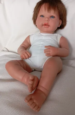 Muñeca de vinilo con un aspecto muy realista, ideal para coleccionistas o como regalo. - Fabricada en vinilo de alta calidad. - Detalles faciales y corporales muy cuidados. - Pelo implantado realista. - Ojos de cristal brillantes.
