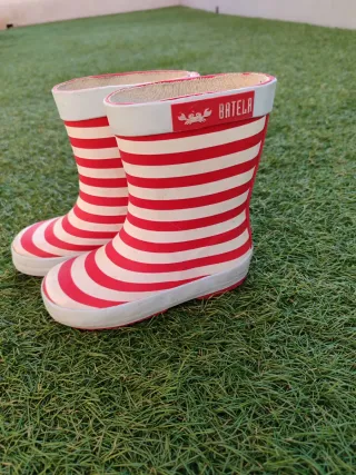 Botas de agua a rayas rojas y blancas de la marca Batela. - Talla 23-24. - Diseño a rayas. - Borde blanco.