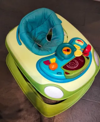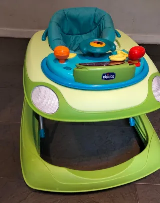 Andador para bebés con un divertido centro de actividades. - Asiento acolchado de color turquesa. Extraíble para su lavado. - Bandeja de juegos con varios elementos. - Estructura de plástico en color verde lima. - Nivelador de altura. - Marca: Chico