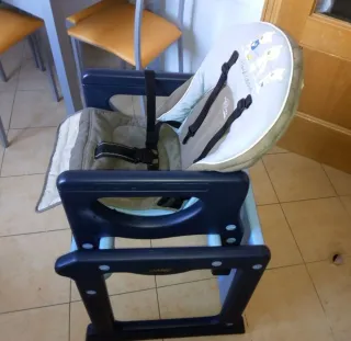 Trona infantil cómoda y en muy buen estado. - Asiento acolchado. - Bandeja extraíble. - Arnés de seguridad.