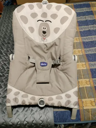 Hamaca para bebé con un divertido diseño de perro. - Color gris con detalles de huellas. - Incluye cinturón de seguridad.