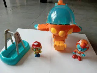 Set de juego de helicóptero de Top Wing de rescate con dos figuras.