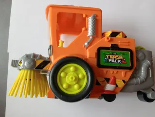 Barredora de juguete de la marca The Trash Pack. - Color naranja y gris. - Incluye escobillas amarillas. - Diseño inspirado en camión de basura.