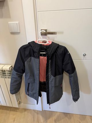 Cazadora de nieve para niños, ideal para mantenerse abrigado y seco. - Diseño en color negro y gris. - Interior en color rosa. - Capucha integrada.