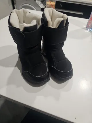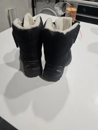 Botas de nieve negras, ideales para mantener los pies calientes y secos en climas fríos. - Cierre de velcro. - Interior forrado y acolchado. - Suela de goma antideslizante.