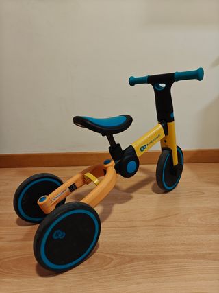 Triciclo evolutivo Kinderkraft en color amarillo y azul. Diseñado para acompañar el crecimiento del niño. - Marco de acero. - Ruedas de goma EVA. - Asiento acolchado y ajustable. - Manillar con empuñaduras antideslizantes.