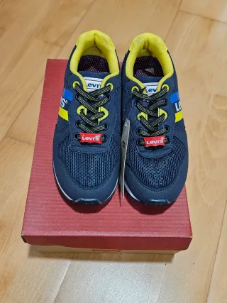 Zapatillas deportivas Levi's para niño, sin estrenar.con etiqueta - Color azul marino y amarillo. - Talla 31. - Cierre con elasticos - Detalle de logo Levi's en la lengüeta.