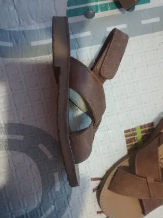 Sandalias de piel para niño, hechas a mano en España. - Color marrón. - Diseño cruzado. - Cierre de velcro. Poco uso