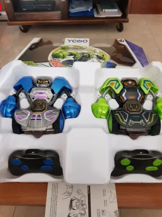 ¡Prepárate para la batalla con este set de robots de combate. - Incluye dos robots de combate. - Robots con diseño de tornado. - Acción de puñetazo 360. - Control remoto incluido.