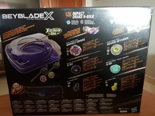Set de batalla Beyblade X con dos peonzas. - Incluye las peonzas Impact Drake 9-60LR y Hover Wyvern 3-85N. - Diseñado para el modo Drop Attack.