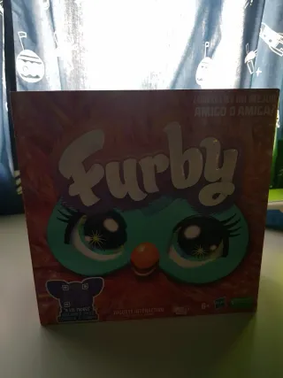 Furby interactivo de color naranja vibrante con detalles turquesa. Sus ojos grandes y expresivos le dan un aspecto tierno. - Pelaje suave y esponjoso. - Orejas grandes y detalladas. - Cresta de pelo turquesa. - Pequeño pico naranja.