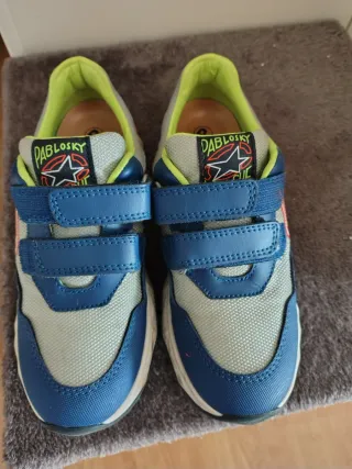 Zapatillas deportivas Pablosky para niño en talla 34. Son muy cómodas y están en muy buen estado. - Cierre de velcro. - Diseño deportivo. - Combinación de colores azul y gris.
