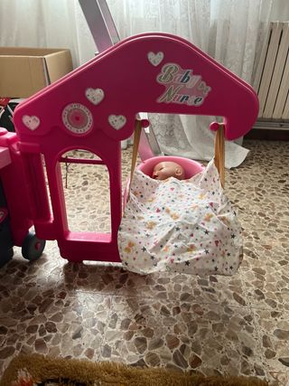 Divertido juego para niñas con temática de muñecas. - Estructura de plástico rosa. - Incluye cuna y lavabo. - Diseño inspirado en el cuidado de bebés.