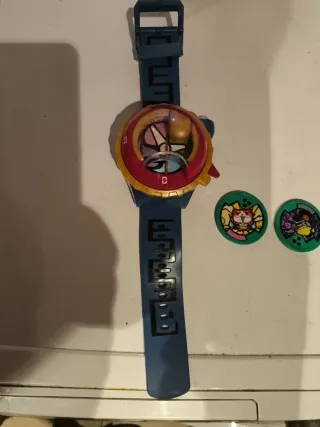 Reloj Yo-kai Watch de Hasbro, modelo B7496546. - Diseño de reloj de pulsera. - Incluye dos medallas. - Correa azul. - Esfera con detalles de colores y números.