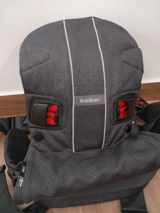 Mochila porta bebés BabyBjörn modelo ONE, en color gris. Ideal para llevar al bebé de forma cómoda y segura. - Diseño ergonómico. - Tejido de malla transpirable. - Hebillas de seguridad rojas.
