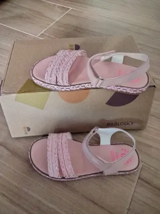 Sandalias de Pablosky para niña en color rosa. Perfectas para el día a día. - Diseño con tiras adornadas con pedrería. - Cierre de velcro para un ajuste fácil. - Suela flexible y antideslizante. Nuevas a estrenar, las he comprado por 45€ pero no me dejan descambiar. Compradas el día 23-02-26