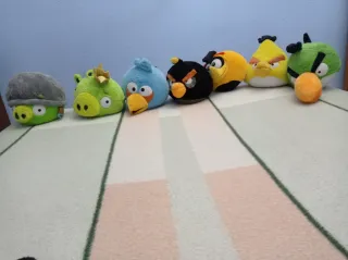 Lote de siete muñecos de peluche de Angry Birds. - Personajes variados de la popular saga. - Suaves y blandos al tacto.