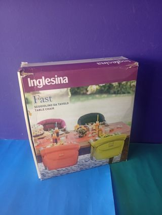 Nueva inglesina Fast Table Chair, de color azul. * Producto adecuado para niños que puedan mantenerse sentados sin ayuda y hasta un peso máximo de 15 kg. * Ideal para comer fuera, ofrece comodidad y seguridad para su bebe en cualquier situación. * Arnés de seguridad de 3 puntos y un respaldo acolchado. * Compacta y ligera, se plega fácil e incluye bolsa para su transporte. * Compatible con la mayoría de las mesas de 20 a 90 mm máximo de espesor. * Bolsillo de almacenamiento.