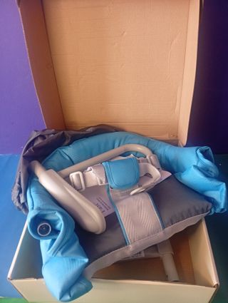 Portabebés para bicicleta marca Hamax, modelo Smiley. - Color azul y gris. - Con cinturón de seguridad. - Reposapiés ajustables.