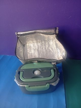 Nueva Fiambrera eléctrica de 80 w, capacidad de 1,5 L, incluye cuchara y tenedor y práctica bolsa para transporte. conexión para encendedor coche, y cable para corriente le hace falta adaptador ya que es cable inglés,.