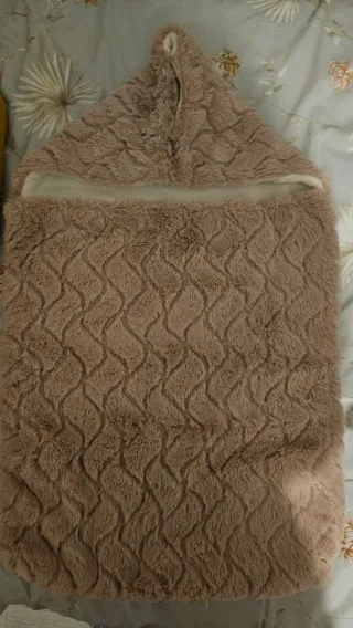 Saco de capazo para bebé, confeccionado en un suave tejido de peluche. - Diseño con textura de ondas. - Color marrón claro. - Capucha incorporada.