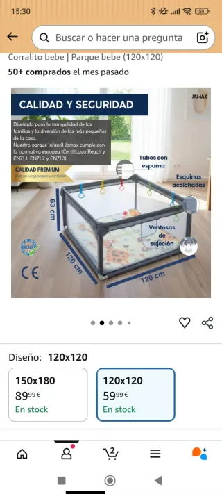 Parque infantil Jamax de 120x120 cm, ideal para la tranquilidad y diversión de los más pequeños. A ESTRENAR se abrió la caja y se volvió a cerrar solo para comprobar el color, ya que compramos otro igual en otro color - Tubos con espuma. - Esquinas acolchadas. - Ventosas de sujeción. - Incluye sonajeros de colores.